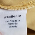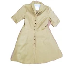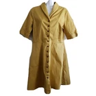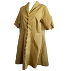 aletier b. Canadian designer button front dress sustainable Good pre-owned condition, no flaws Falls above knee on most people Pockets at hips 98% cotton, 2% spandex Buttons down front Made in Montreal Canada Marked a size L Approximate measurements 18.5 inches from armpit to armpit 15.5 inches across waist 34.5 inches in length from top of shoulder to bottom of hem