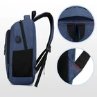 This large nylon backpack travel laptop bag is designed for both men and women in a sleek black color with a solid pattern. It features a zip closure, adjustable shoulder strap, and various compartments including a USB cap for easy charging on the go. The bag is perfect for travel and business occasions, with a durable nylon lining and plastic hardware. With a modern design and practical features, this backpack is a stylish and functional accessory for school or work.