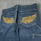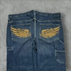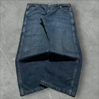 baggy carpenter jnco style wide leg y2k skater jeans ⚫️ measures to 40x30 / 9.5” LEG OPENING ⚫️ NOT JNCO‼️‼️ ⚫️ baggy and wide around thighs and legs ⚫️Condition is as pictured. There may be some marks or distressing not shown so it’s best to examine the pics closely to get an idea of the condition. All items are preloved/thrifted.