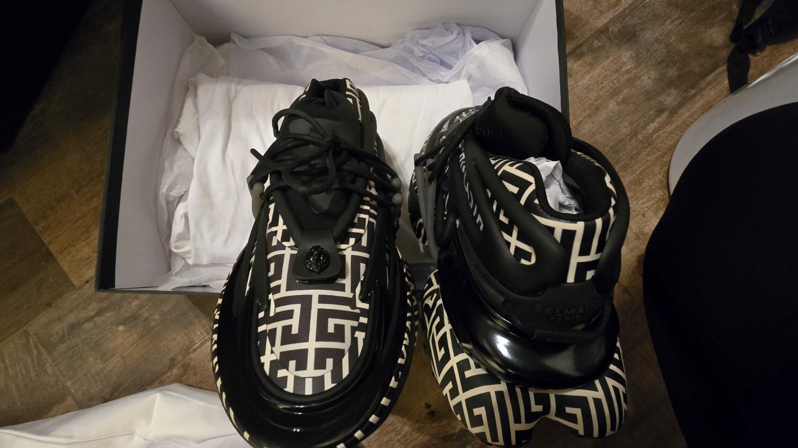 The product is a pair of Balmain sneakers in a unique unicorn design, specifically made for men in US size 11. These sneakers would likely feature a colorful and whimsical design inspired by unicorns, making them stand out from traditional footwear options. The Balmain brand is known for its high-end fashion and designer shoes, so this product is likely to be a stylish and fashionable choice for those looking to make a statement with their footwear.