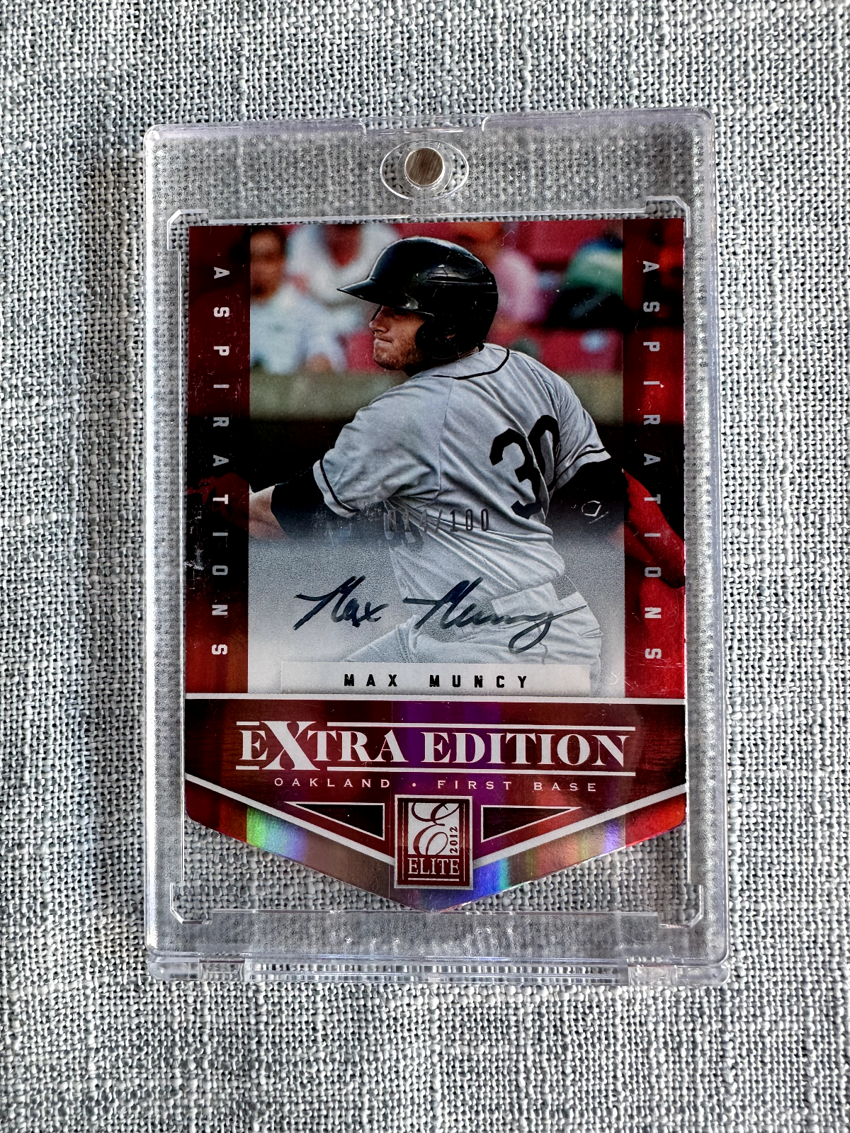 This baseball card features Max Muncy from the 2012 season, manufactured by Panini. It is a sports trading card of the Refractor parallel/variety, with a card number of 400010. The card is a great addition to any collection for fans of baseball and sports trading cards.