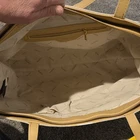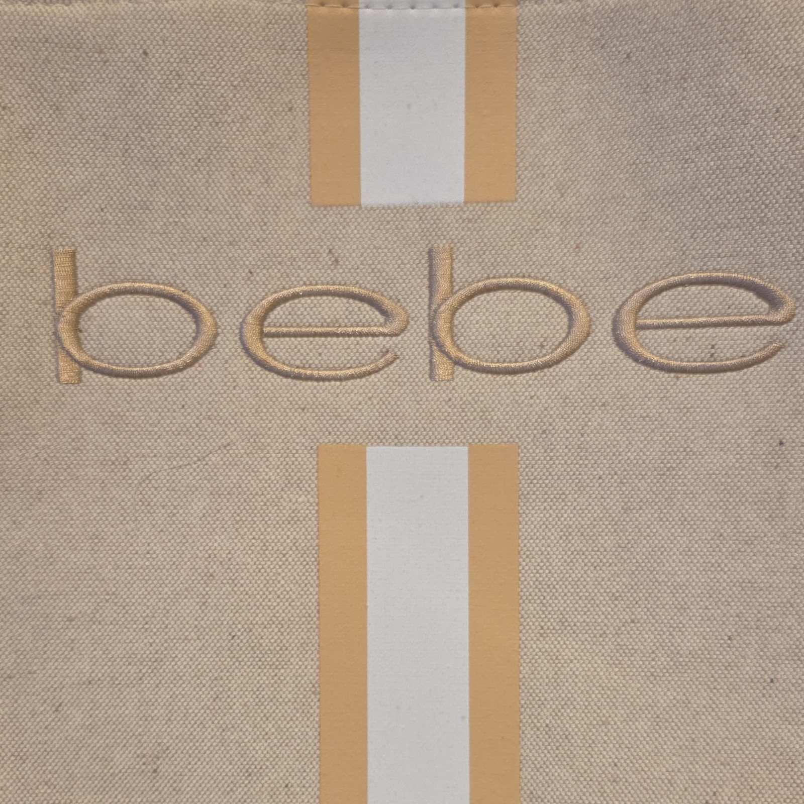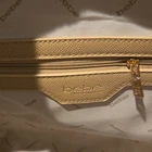 The bebe Tote Paisley Almond Gold Hardware Logo Zipper Accent Inner Pockets is a stylish and spacious tote bag designed for casual occasions. Featuring a rectangular shape with a large size and double almond-colored handles, this bag has a solid beige exterior with gold hardware accents. The interior is lined and includes inner pockets for organization. Made of faux leather and canvas, this tote from bebe is a fashionable designer accessory for women looking to make a statement.
