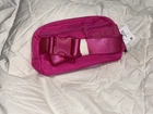 Accents: Button Accent Lining Color: Pink Handmade: No Handle Style: Crossbody Strap Closure: Zip Handle/Strap Material: Nylon Exterior Material: Nylon Features: Adjustable Strap, Lightweight, Mobile Phone Pocket, Pockets, Water Resistant, Zip-Around Product Line: Lulu Belt Bag Style: Belt Bag & Fanny Pack Personalize: No Hardware Color: Silver Theme: Designer Shape: Oval Handle/Strap Color: Pink Vintage: No Hardware Material: Stainless Steel Department: Women Pattern: Solid Occasion: Business, Casual, Party/Cocktail, Travel, Workwear Brand: Unbranded Size: 1L Exterior Color: Pink Character: Lulu