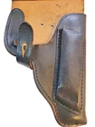 This black leather holster is designed for a 22 caliber pistol with a mag holder, perfect for Ruger type pistols. The holster is made from high-quality leather and has a belt attachment for OWB carry. It is suitable for right-handed individuals and has a carry position of 3 o'clock. This cowboy/western holster has a level 2 design and can hold one magazine. It is ideal for hunting and other outdoor activities. The holster is attached to a belt and has a sleek black color. It is perfect for those who are looking for a holster that is both durable and functional. All best offers welcomed!!!!!!!!!!!!!!!!!!!!!!!!!!!!!!!!!!!!!!!!!!!! I ship within one business day after payment is cleared. I accept returns within 30 days of purchase. However, YOU must pay for return shipping and pay a 20% restocking fee. The item must be returned in the same condition it was shipped in. Please examine all photographs of the items thoroughly to avoid any returns and contact me first if you have any concerns, questions, and feedback in reference to this item before and after the purchase. Please leave positive feedback when you receive your merchandise. Feedback allows our business to grow. Thank you for your time and consideration.