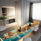 Customization Available, Please Message your desired size and shape This Epoxy Table is a perfect gift for anyone who appreciates the beauty of nature and the art of furniture making. It is a unique and stylish addition to any home decorative, whether you're looking for a modern or rustic vibe. Each table is handmade with care, ensuring that no two are alike. Take advantage of the opportunity to own this stunning and unique Epoxy Table - order yours today and bring the beauty of nature into your home! 1. Premium Quality Materials: Our table top is meticulously crafted using high-quality wood and epoxy resin, ensuring durability and longevity. The wood's natural grain patterns and textures add a rustic charm, while the epoxy resin provides a glossy, smooth finish that enhances the overall appeal. 2. Customizable Designs: We offer a range of customizable designs and color options for the epoxy resin, allowing you to create a table top that perfectly complements your existing decorative or design theme. Whether you prefer a bold and vibrant look or a more subdued and classic appearance, we can tailor the table top to suit your preferences. 3. Environmentally Friendly: We are committed to sustainability and responsibly sourced materials. Our table tops are made from eco-friendly wood and resin, making them an environmentally conscious choice for conscious consumers. 4. Sizes and Shapes: We offer a range of standard sizes and shapes to fit different table bases, or we can accommodate custom measurements to suit your specific requirements. Note: This process is whole done by hand and are based on natural wooden log, the table shown in the photos has already been purchased so actual product may vary from the picture shown. We will also share processing images with the buyer step by step. (Only table top legs is not included)