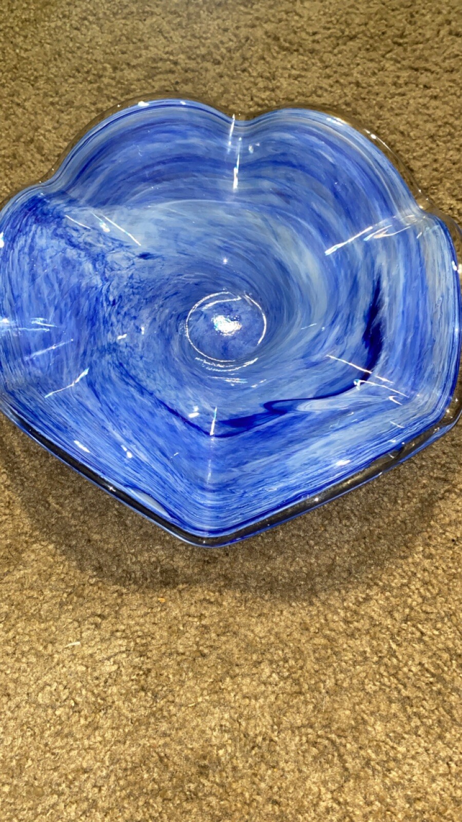 This beautiful blue glass bowl is a must-have for any collector of vintage Murano glassware. The intricate pattern and exquisite color make it a stunning piece that is sure to impress. Crafted from high-quality glass, this bowl is durable and perfect for serving your favorite dishes. Its unique design is perfect for any occasion, whether you're hosting a dinner party or simply enjoying a casual meal with your family. The brand Murano is synonymous with quality and this bowl is no exception. Add it to your collection today and enjoy its timeless beauty for years to come.