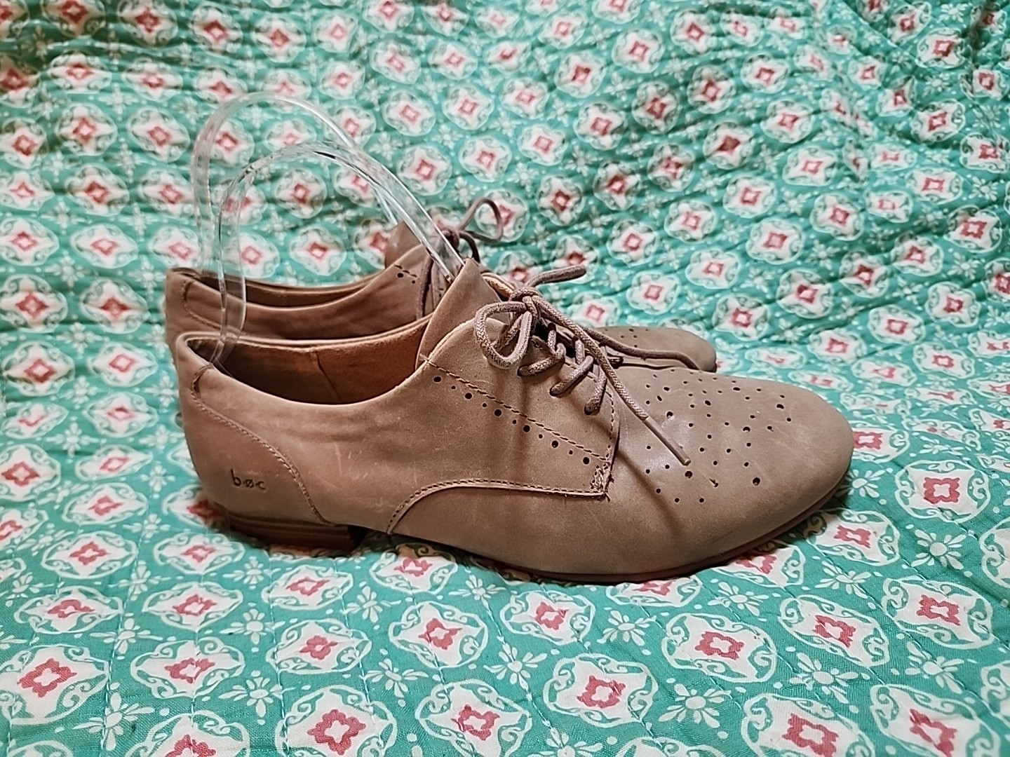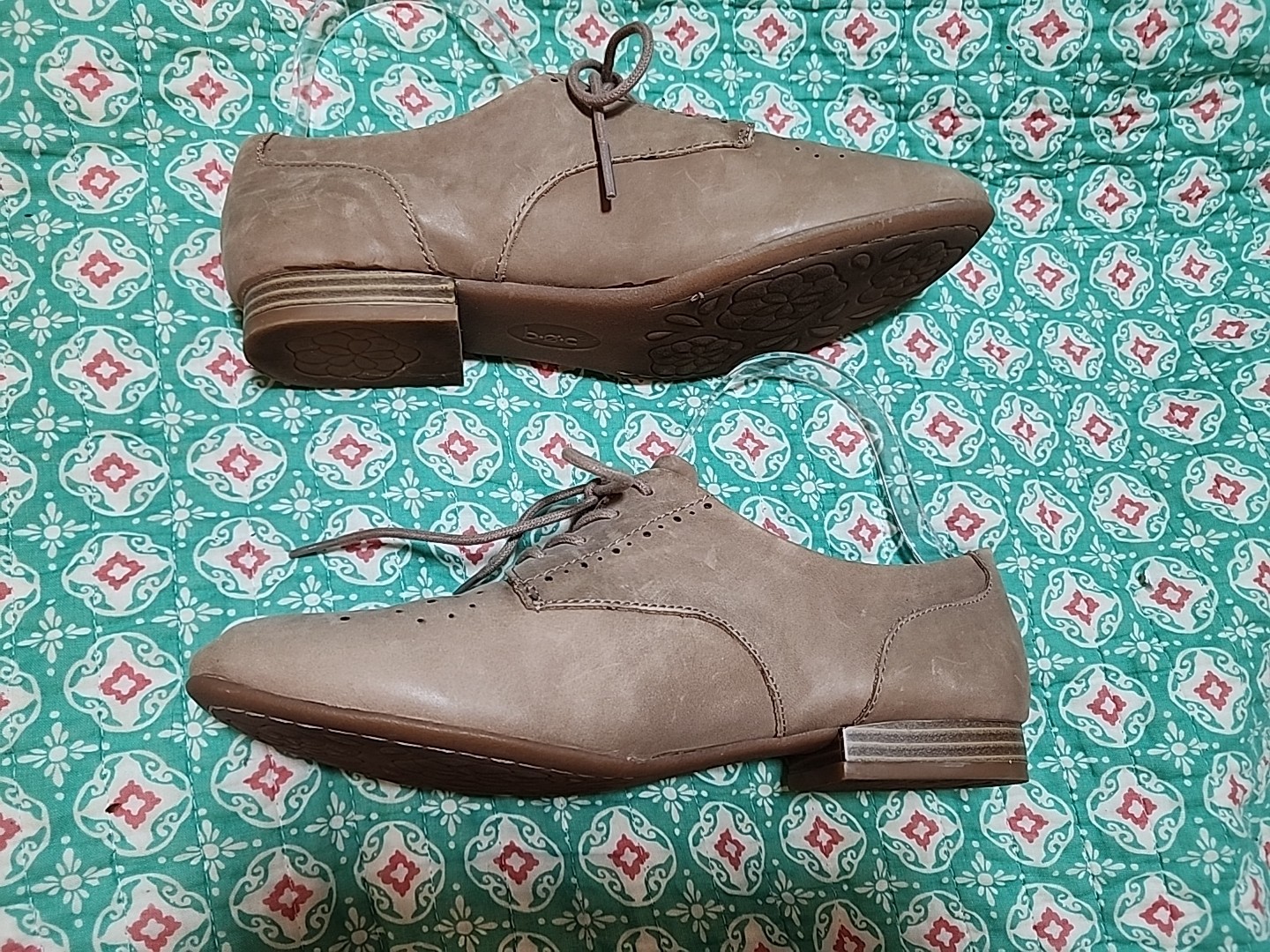 Nice condition women's tan leather lace up oxfords. Leather is soft and supple. So.e light scratches in leather near heels and small scratch in left toe, see pics.