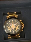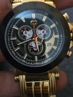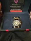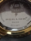 The Brillier men's watch features a luxurious design with a gold case color and a multi-dial dial pattern in white and cream colors. It has a 46mm-49mm case size with a buckle closure and a two-piece strap in gold and stainless steel ingot. This Swiss-made quartz watch includes features like a date indicator, day indicator, and easy-to-read large numerals. With water resistance up to 50 meters, this timepiece is a stylish and functional accessory for the modern man.
