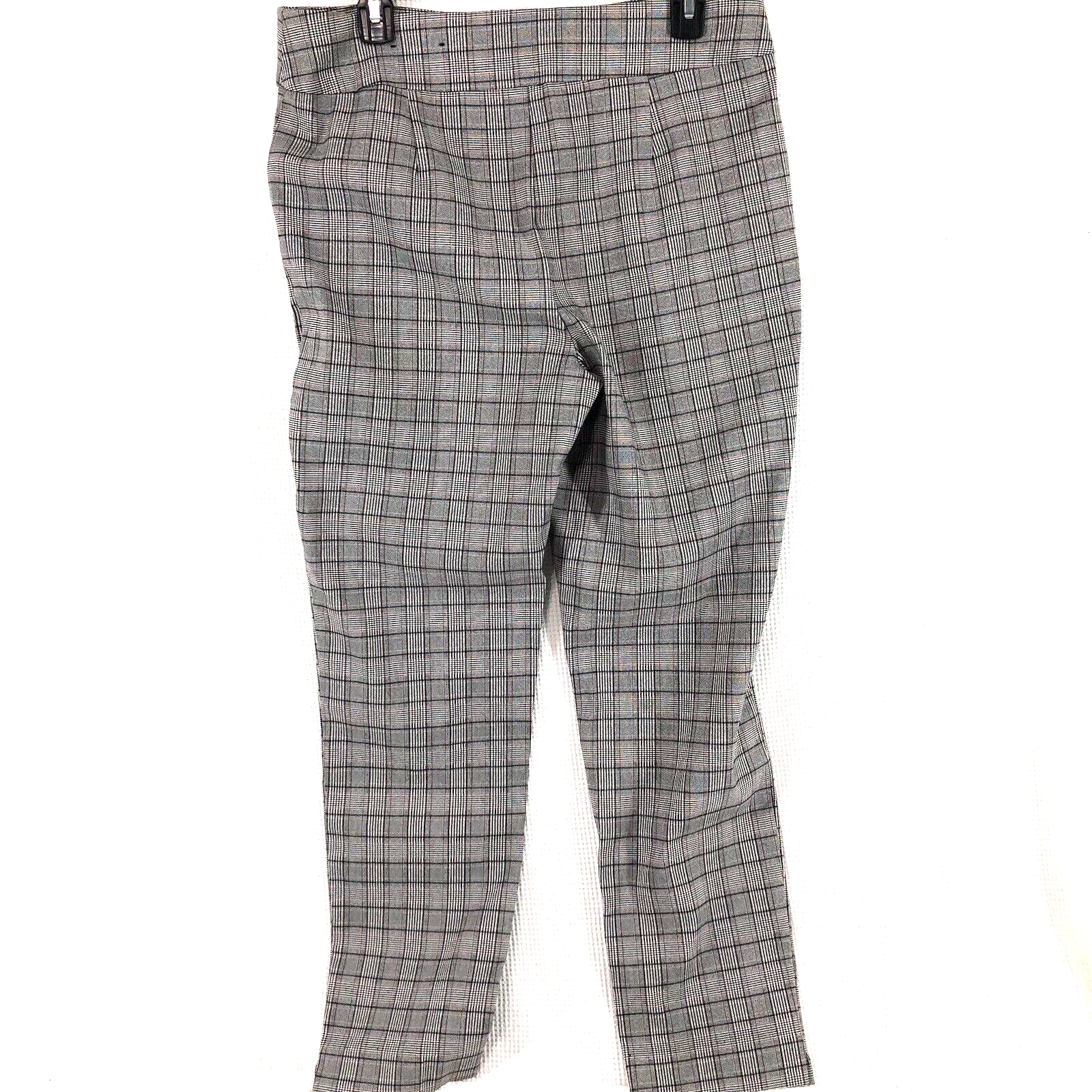 The business leggings by NY Collection in black, grey, and red houndstooth plaid offer a stylish and versatile option for both casual and business occasions. Made from a blend of polyester, nylon, and spandex, these leggings are machine washable and feature a comfortable, lightweight design. With a classic, colorful theme and ankle length, these leggings are perfect for various seasons and activities, making them a practical and fashionable addition to any woman's wardrobe.