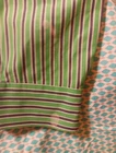 The Chaps men's button shirt in XL size features a classic striped pattern in green and blue colors, with long sleeves and a collared neckline. Made from a blend of polyester and cotton, this regular fit shirt also includes button accents and a vintage-inspired design. It offers a timeless appeal with its button-up style and features pockets for added convenience. Perfect for a classic casual look, this shirt is a versatile addition to any man's wardrobe.