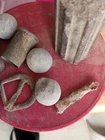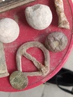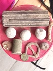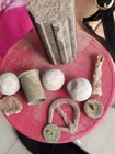 Items dug froma little south of Fredericktown mo. A couple cuff buttons one being an eagle. Forged nail 3 roundballs a fired pistol bullet. Spencer Casing. What looks to be a kepi buckle of some kind .what looks to be part of a table leg?