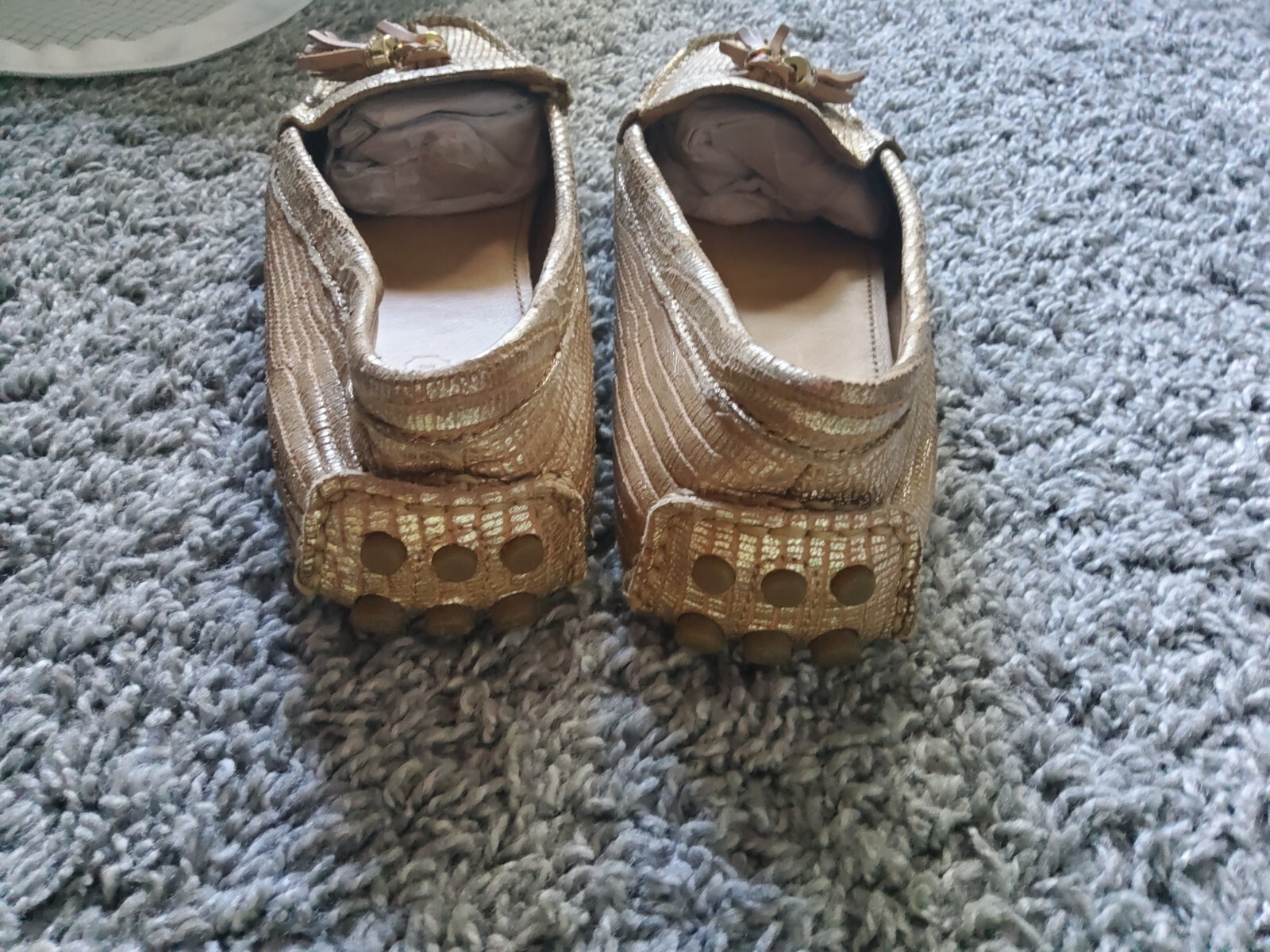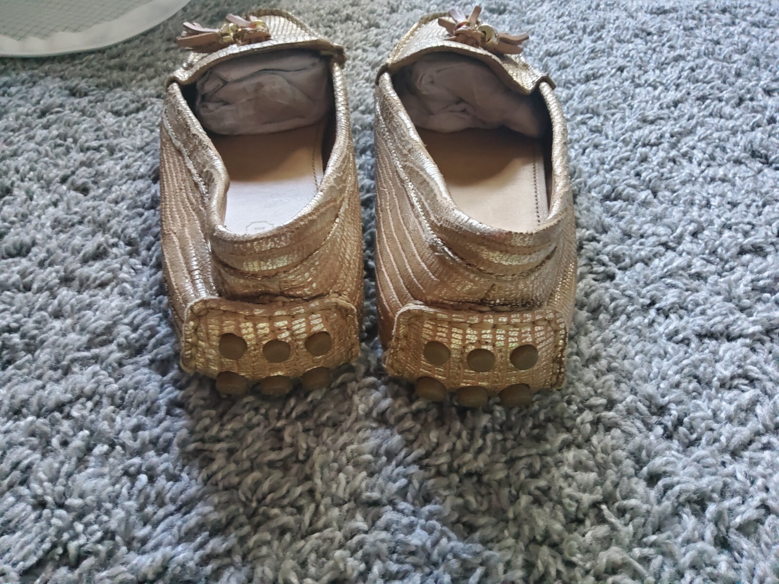 coach gold leather drivers mocassins women size 7B.cleaned and sanitized. No smell no stain,some signs of wear see photos. Feel free ask me any questions an extra photos. Pet free smoke free home.