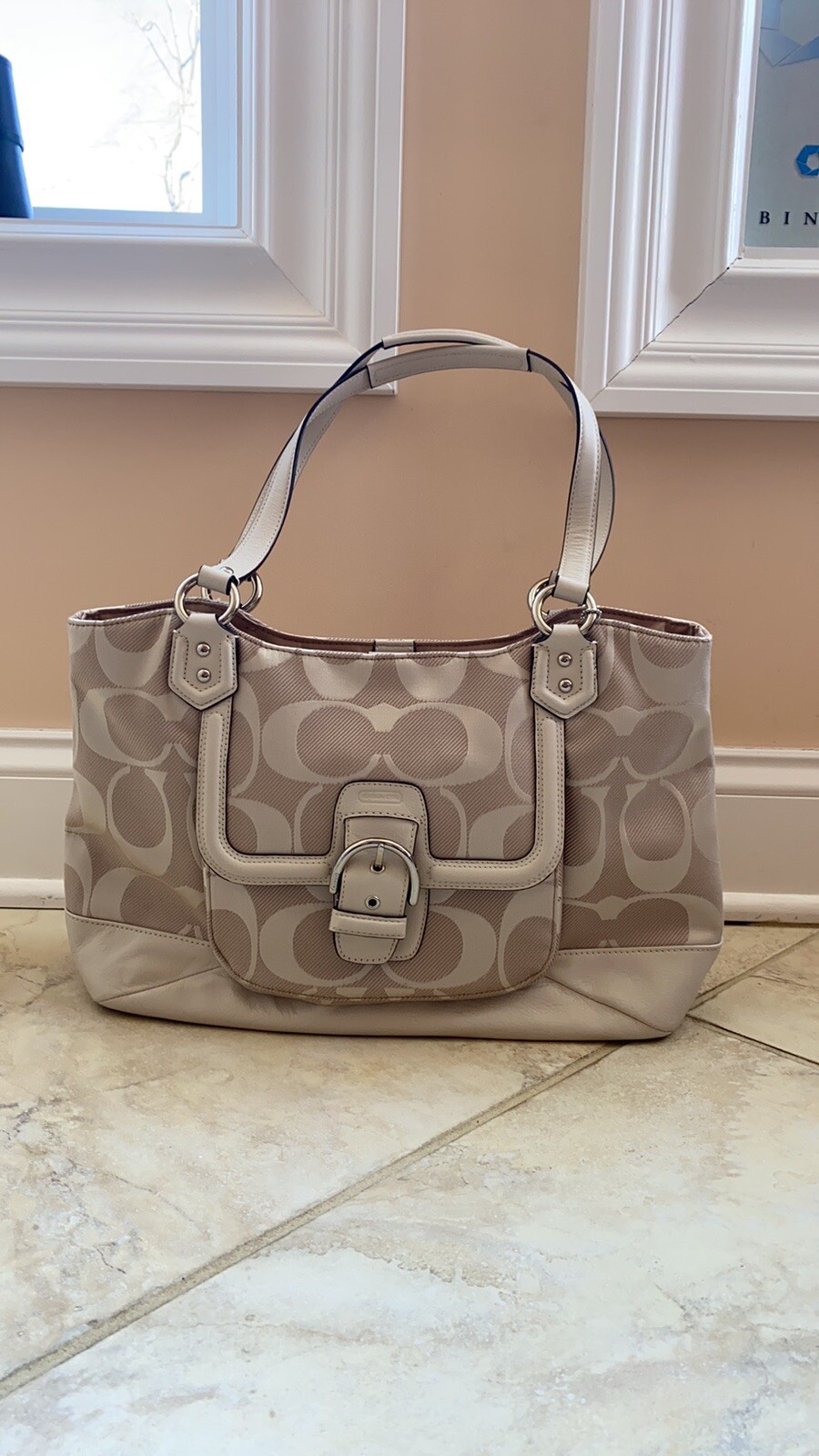 Coach medium size, double strap shoulder bag. Khaki/parchment. Retail $378 New with Tag.