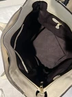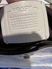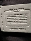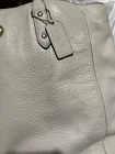 Soft leather pearl white Coach tote/handbag with two pockets. - gold hardware. - One zippered pocket and the other is a front clasp. - Inside there is one small zipper pocket with two other small slide in pockets, perfect for a cell phone. - zip top closure, fabric lining