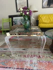 coffee table. Very good conditions, vintage elegant and stylish coffee table, legs made from acrylic , top from glass and metal