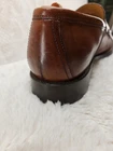 Cole Haan Hawthorne Brown Penny Loafer in size 9.5 for men. This slip-on dress shoe features an almond toe shape, solid pattern, and a leather upper with leather lining. The outsole is made of leather and rubber for slip resistance. It offers cushioned comfort and arch support, making it suitable for all-day wear in summer, fall, and spring. The shoe is part of the Cole Haan Grand product line. These shoes are gently used and beautiful to see...A perfect fit for today's brown shoe/blue suit style...as you know Cole Haan is an old trusted higher end shoe which deserves a second look...these shoes show very little signs of wear....B1075