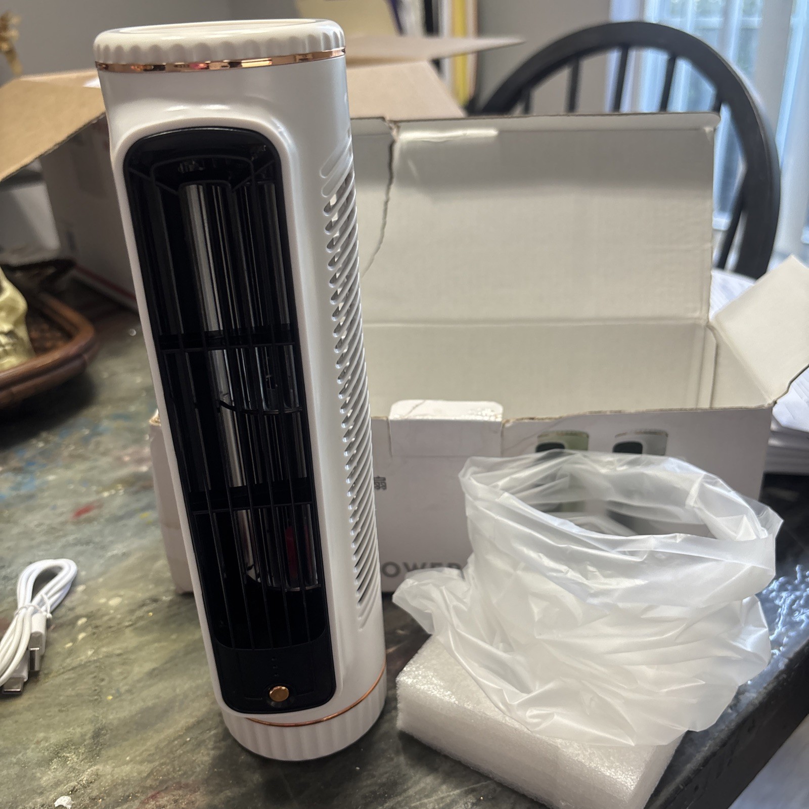 The desktop Tower fan is a sleek and modern fan designed for indoor use. With a bladeless orientation, this fan is safe and easy to operate. It features a white color and a plastic material construction, making it suitable for any room. The fan offers 3 different speeds and the oscillation feature allows for customizable airflow. With a cordless design and 120V voltage requirement, this fan provides efficient cooling in a compact package.