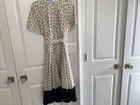 The Diane Von Furstenberg cream and black polka dot silk dress is a sophisticated and stylish option for various occasions such as weddings, parties, and formal events. Made from luxurious silk fabric with a satin texture, this midi-length dress features a round neckline, short sleeves, and a flattering polka dot pattern in ivory and black. With the iconic Diane Von Furstenberg brand name, this dress is designed for a size 4 regular fit, making it a chic and elegant choice for women looking to make a statement at their next event.