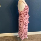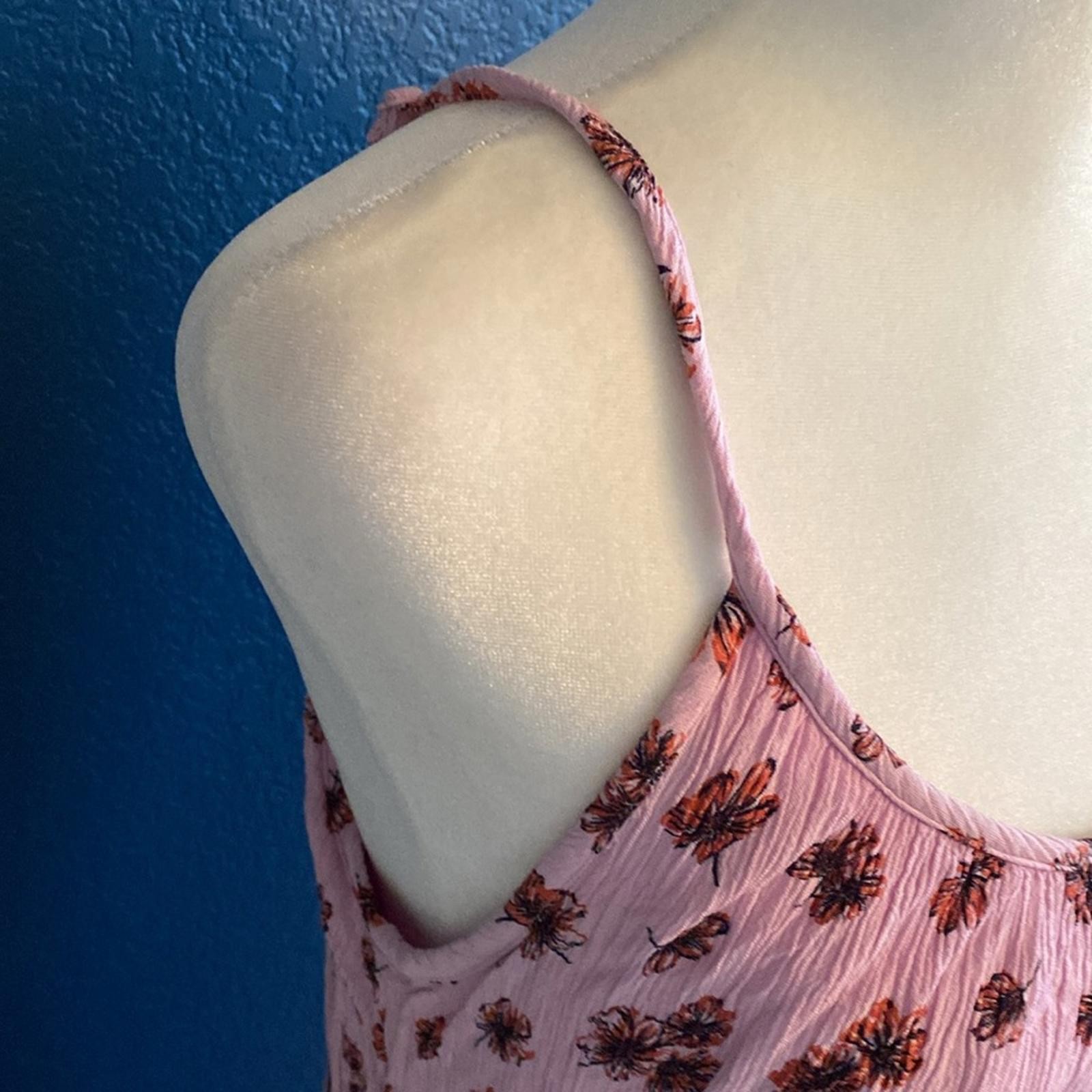 Lovely pink midi dress featuring a floral pattern. Designed with spaghetti straps and a tie waist.