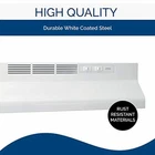 Product Dimensions 6"D x 17.5"W x 30"H Color White Special Feature Lighting Finish Type White HIGH-QUALITY DUCTLESS RANGE HOOD INSERT: White hood insert improves ventilation and lighting over your stove with the non-ducted filtration system that effectively removes smoke and odors EFFECTIVE INCANDESCENT LIGHTING: A protective lamp lens distributes light evenly over the cook-top and accepts up to 75W bulb (bulb not included) EASY CARE: Charcoal filter is replaceable so you can maintain optimum grease capture and keep the kitchen fresh VERSATILE: Separate rocker switches control the light and the 2-speed fan for easy use IDEAL SIZE: Range hood insert measures 30" and should be installed at least 18" above cook top Installs as non-ducted only with charcoal filter 75-watt cooktop lighting (bulb not included) On Jun 14, 2024 at 05:48:51 PDT, seller added the following information: