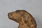 early antique cast iron doorstop flat setter dog w/flowers worn rare original old original rare cast iron doorstop 1. original not marked not reproduction 2. needs a little cleaning, I have not cleaned it, right out NH attic 3. I have been buying and selling or more than 50 years, I have never seen this form 4. original worn paint 5. some surface rust, will brush off 6. this will look a lot better when cleaned 7. long ear, long haired, setter type of dog approximate measurements 1. 9 in. long x 7.5 high x 1/2 in thick at body 2. base 9 in. long x 1.5 in. thick ground advantage or priority shipping and handling in US scroll down for larger photos You may be interested in our other eBay listings . I send a note at the end of the sale with payment information. Payment is expected within 2 days. We ship promptly within 1 day on receipt of payment. All US packages have tracking and are insured. International Buyers We ship international with United States Postal Services. USPS First Class postage and Flat Rate Priority Boxes or Envelopes can now be tracked to some countries . International packages over $100 ship priority or express. Contact us for more information. Import duties, taxes and charges are not included in the item price or shipping charges. These charges are the buyer’s responsibility. Please check with your country’s customs office to determine what these additional costs will be prior to bidding/buying.” . Powered by SixBit's eCommerce Solution