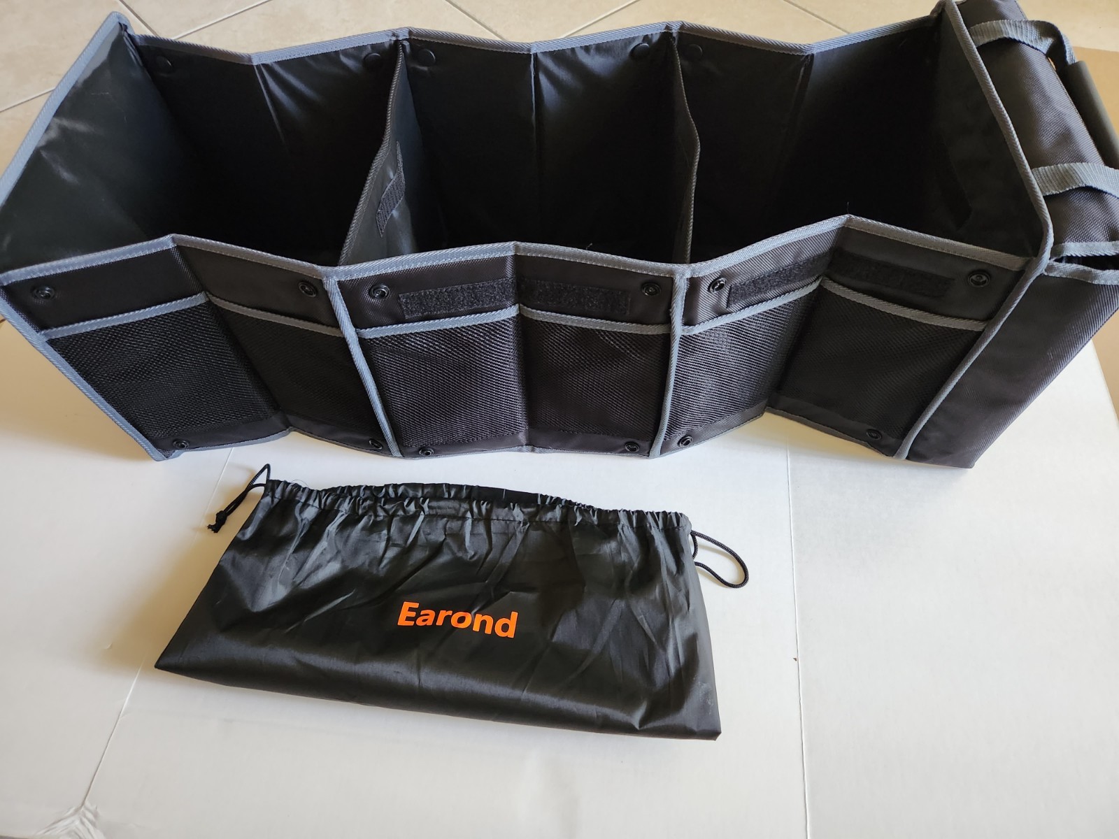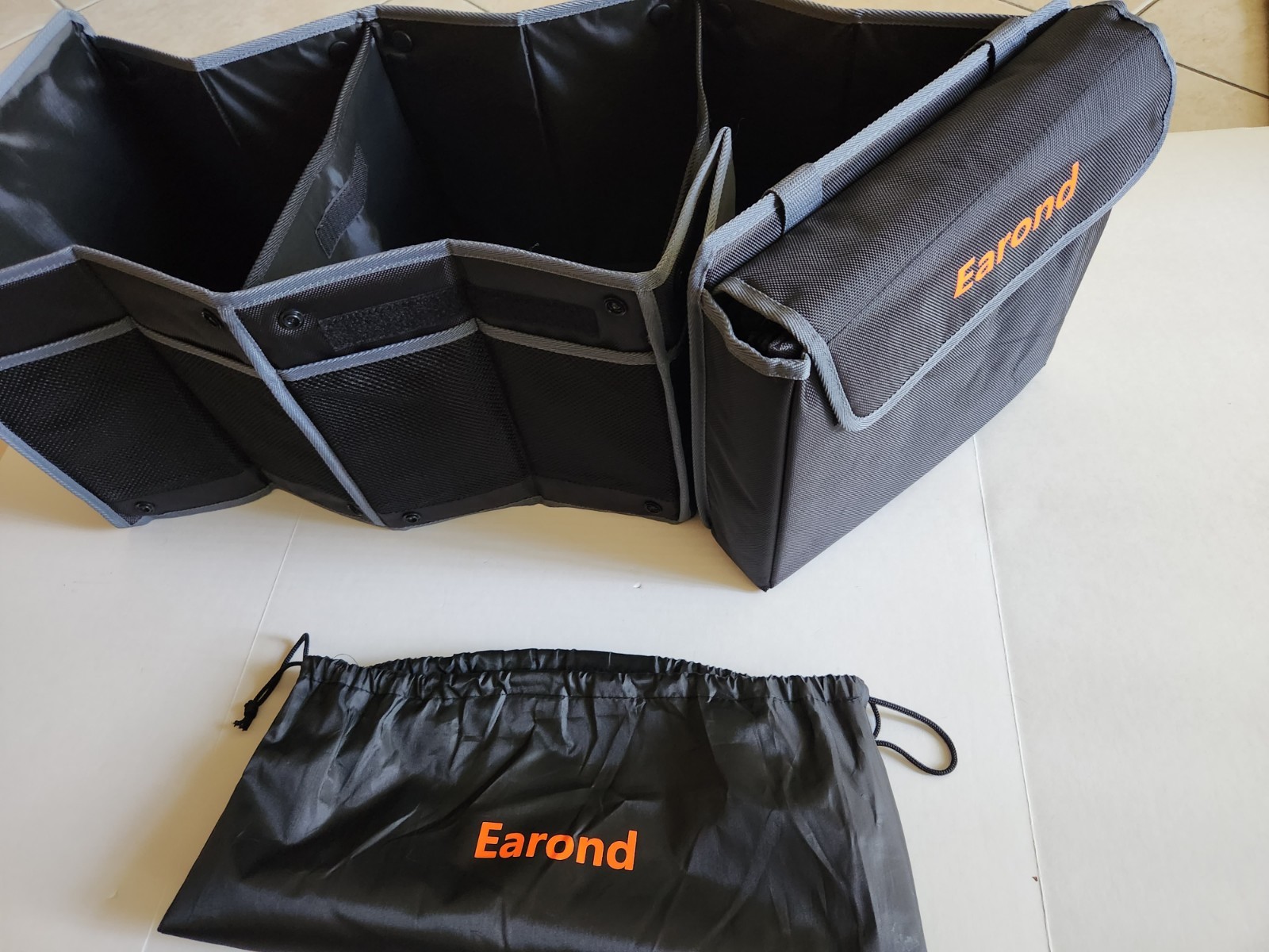 Explore the convenience of the Earond Trunk Organizer, an essential addition to any car owner's accessories. Designed for ease of use, this organizer is portable, allowing for quick setup and relocation. It's perfectly sized for trunks of various sizes, providing a neat and organized space for your belongings or provisions. The product also features a leakproof cooler bag, ideal for keeping items fresh or chilled during long drives. Whether you're planning a road trip or simply need a reliable storage solution for your vehicle's trunk, this Earond organizer is crafted to meet your needs with style and efficiency. New never used.