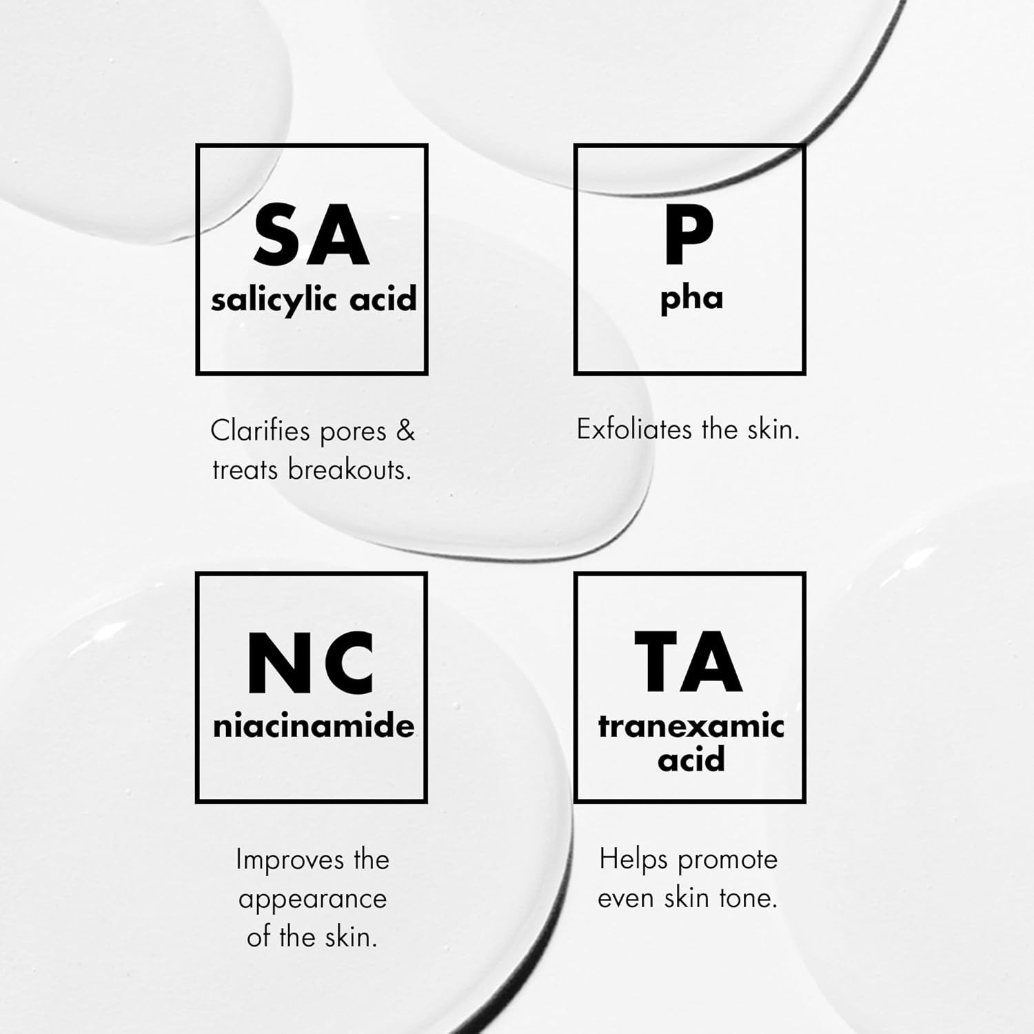 e.l.f. SKIN Blemish Breakthrough Triple-Acid Resurfacing Serum Mini, Hydrating Night Serum For Fighting Blemishes, Helps Improve Skin Tone & Texture Product Details Package Dimensions : 4.13 x 1.65 x 0.67 inches; 0.53 ounces Item model number : 57567EU Manufacturer : e.l.f. Cosmetics Country of Origin : China Skin Type: Acne Prone Product Benefits: BreakoutsTreatment, Blemishes Treatment, Anti-Acne Use for: Face Scent: Aloe Special Ingredients: Niacinamide, Salicylic Acid SERUM FOR FIGHTING ACNE: Clarify congested pores and visibly improve the look and feel of your skin, all while you're catching some zzz's. This triple-acid serum is your skin's overnight post-breakout go-to. HYDRATES & EVENS SKIN TONE: The e.l.f. SKIN Blemish Breakthrough Triple-Acid Resurfacing Serum treats breakout while you sleep and resurfaces and evens skin tone while hydrating the complexion. INFUSED WITH NIACINAMIDE: This serum harnesses the powers of our Triple Acid Complex plus Niacinamide to improve skin tone and texture and soothe and nourish skin. HOW TO USE: Apply 3-5 drops in the evening on clean skin and wake up to a smoother, more even, and clearer complexion. If irritation occurs, use every other day. VEGAN & CRUELTY-FREE: 100% vegan, e.l.f. is double-certified cruelty-free by Leaping Bunny & PETA. What is it: A dermatologist-developed, 8.5% triple-acid serum that helps improve skin tone and texture post-breakouts. Why you'll love it: Night serum for blemishes-prone skin Powered by 8.5% triple-acid complex: Salicylic Acid, Tranexamic Acid, and PHA Plus 10% Niacinamide to soothe and even skin tone Dermatologist-developed and non-comedogenic Fragrance-Free Key ingredients: 8.5% Triple Acid Complex (Salicylic Acid, PHA, Tranexamic Acid)- Helps treat blemishes, exfoliate, and even out skin tone 10% Niacinamide - Helps improve skin tone and control excess oil Great for: Oily Skin Acne-prone skin Clarify congested pores and visibly improve the look and feel of your skin, all while you're catching some zzz's. This triple-acid serum is your skin's overnight post-breakout go-to. It harnesses the powers of our Triple Acid Complex plus Niacinamide improve skin tone and texture and soothe and nourish skin. Apply 3-5 drops in the evening on clean skin and wake up to a smoother, more even, and clearer complexion. If irritation occurs, use every other day. All e.l.f. products are free from phthalates, parabens, nonylphenol ethoxylates, triclosan and triclocarban. Proud to be 100% vegan, cruelty-free, and Leaping Bunny Certified. Because kindness is chic.