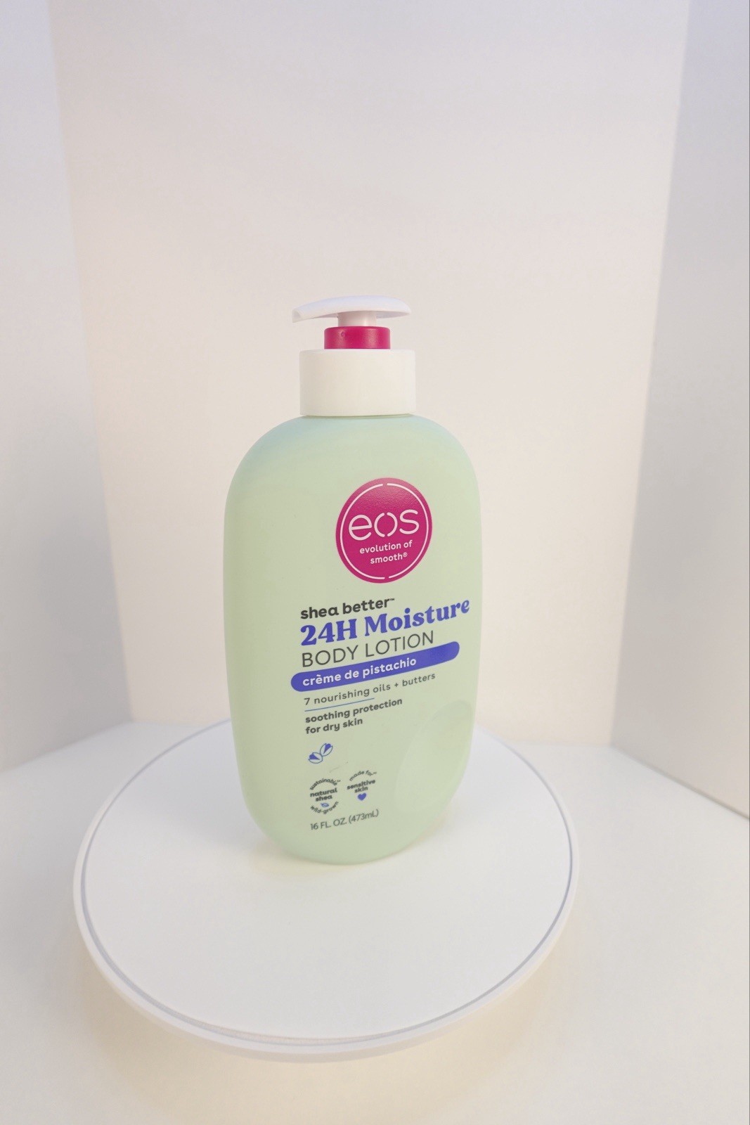 The eos Shea Better Body Lotion in Crème de Pistachio is a luxurious moisturizer specifically formulated for dry skin. Infused with shea butter and aloe vera, this lotion provides deep hydration and soothes the skin. With a sun protection factor of SPF 2 and 5-star UVA protection, it also offers some protection from the sun's rays. This 16 fl oz lotion is perfect for daily use on the full body, making it a convenient and effective option for women looking to keep their skin soft and nourished.