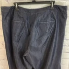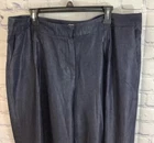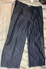 Dress pants/ trousers, chambray navy blue, pleated front, zipper with hook & eye closure, wide leg, front pockets with faux back pockets. Preowned fair condition, seam thread is pulling, please see the last photos . Very nice pants with flaw