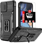 for Motorola Moto G Power 5G (2023) Case with 2 Tempered Glass Screen Protectors,Moto G Power Kickstand Case with Slide Camera Cover& 360°Magnetic Ring Stand Shockproof Phone Cover Man Black