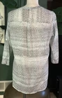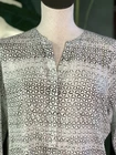 foxcroft women 10 Gray geometric print cotton button front tunic top. In excellent condition like new Cotton Bust 21” Lined 27” N1FG47