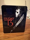 Some light scratches on the tin, otherwise in great shape, has all of the 3D glasses, mini booklet included The "Friday the 13th Blu-ray Collection Tin" is a collector's edition steelbook set featuring the iconic horror movie franchise. Directed by Sean Cunningham and starring Kane Hodder, it includes special features like commentary. This limited edition set is in Blu-ray format with English language options, and is released by Paramount Pictures.