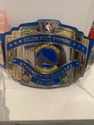 The product is a belt featuring the branding of the Golden State Warriors, a professional basketball team in the National Basketball Association (NBA). As a fan apparel and souvenir item, this belt is designed for supporters of the Golden State Warriors to showcase their team pride while adding a sporty touch to their outfit. Perfect for fans of basketball and the Golden State Warriors, this belt is a stylish accessory that allows fans to represent their favorite team both on and off the court. This is customer made hand made just like pro belts
