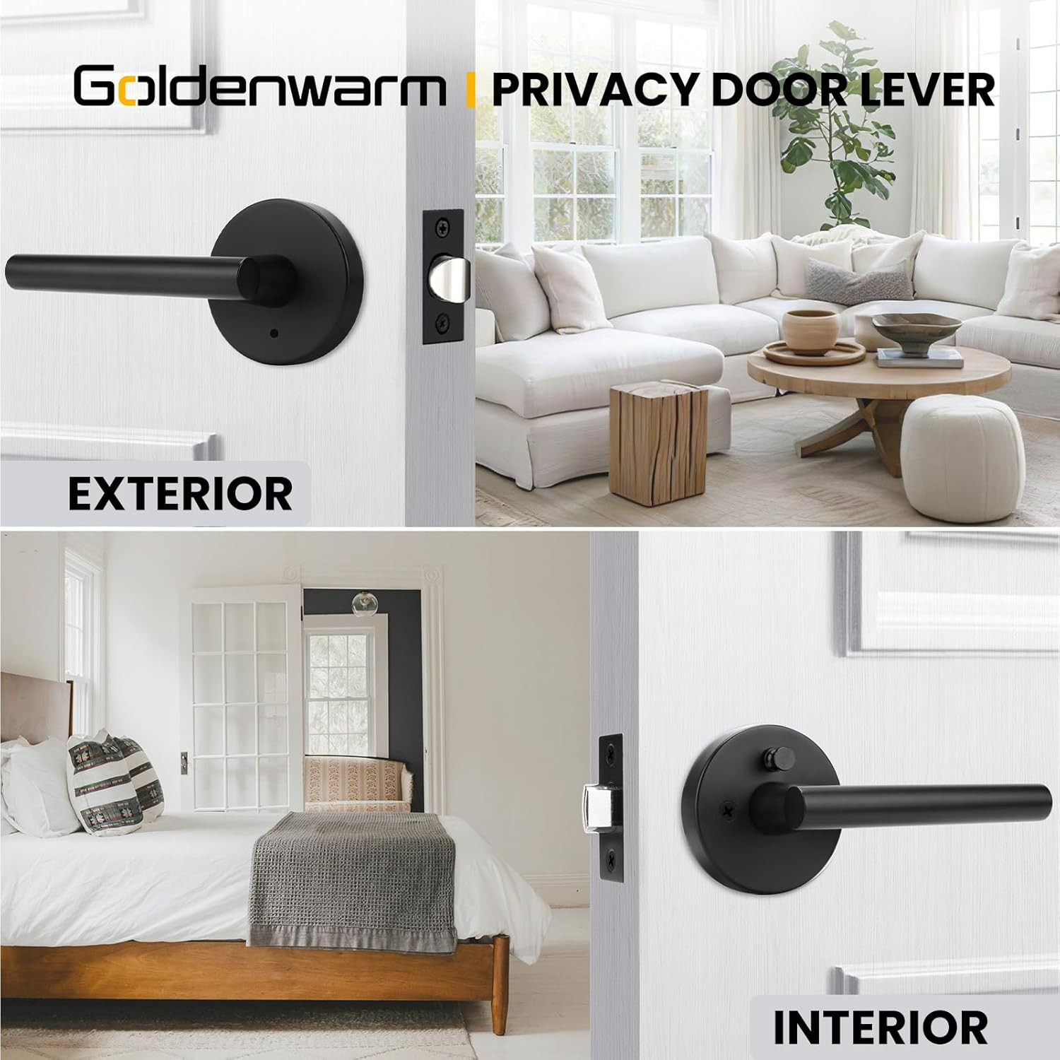 goldenwarm 6 Pack Black Door Handles, Matte Privacy 6 Pack, Product Details Material: Zinc Alloy with Brass Parts Brand: goldenwarm Color: Matte Black Product Dimensions: 12"L x 10"W Exterior Finish: Matte Black Specific Uses For Product: Door Special Feature: Easy to Install, Sturdy, Durable Included Components: Screwdriver Lock Type: Push Button Lock Metal Type: Zinc Alloy, Brass Handle Material: Zinc Package Type: Multi-Pack Number of Items: 6 Manufacturer: goldenwarm Room Type: Bathroom, Bedroom Indoor/Outdoor Usage: Indoor Item Weight: 12.98 pounds Item model number: e7a5721f-304a-4461-92d8-a7afaa08f821 Size: 6 Pack Finish: Satin Special Features: Easy to Install, Sturdy, Durable Batteries Included?: No Batteries Required?: No Material: Zinc Alloy with Brass Parts Brand: goldenwarm Color: Matte Black Product Dimensions: 12"L x 10"W Exterior Finish: Matte Black StyleHandle Type: PrivacyPull Handle ShapeFinish Type: RoundSatin Material:The matte black door handle heavy duty made of premium zinc ally material and brass parts, sturdy and durable. The interior black privacy door handle is matte black finish long-lasting product life Easy Installation: The black interior door handle is straightfoward installation with pre-existing hole requiring only a screwdriver. The door levers matte black can locks from the inside with a push button and unlocks from the outside with a needle in emergency Wide Applications: The interior door handles are ideal for rooms where privacy is needed, such as bathrooms, bedrooms, offices, rooms or other places privacy required. The black door handle interior designed to completed both conventional and modern style interior doors Customer Service: The goldenwarm interior black door handle are strictly inspected. If you have any questions about our black door levers, please feel free to contact us