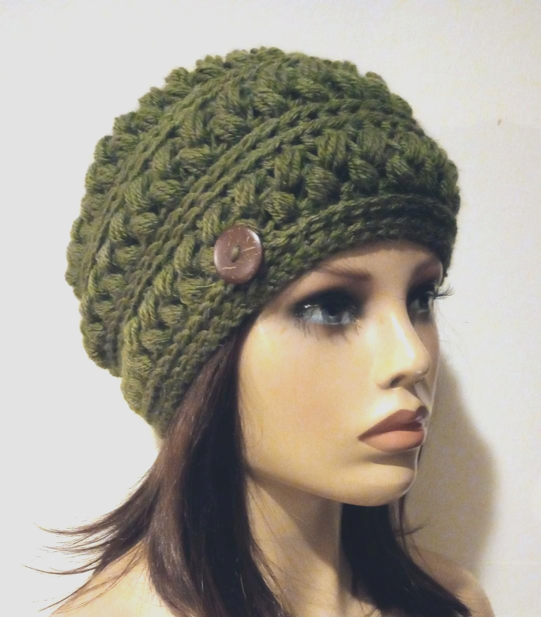 only one coupon or discount per item This beautiful handmade crochet beanie hat with a button accent is perfect for dressing up any outfit. Its one-size-fits-all design is made with high-quality material and features lovely puffs. The crochet detailing adds a touch of elegance and the hat is suitable for winter, fall, and spring seasons. The hat is ideal for women who love to accessorize and want to add a unique touch to their wardrobe. This is handmade with care in the United States, and the hat is perfect for those who appreciate vintage style but with a modern edge. This beanie hat is the perfect addition to any outfit, making it a must-have for any fashion-forward individual. measures about 22 inches around the head. the height is about 8 1/2 inches unstretched. hand crafted with an acrylic yarn. buttons may slightly vary Check out my other items