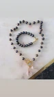 Handmade Black pearl necklace with rose quartz charm, handmade piece, unique piece.