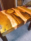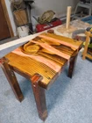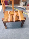 handmade wood/ epoxy river table, end table or night stand.. wood is treated with a dark walnut stain and the epoxy has a rose red mica, and a final clear coat of epoxy over entire table.