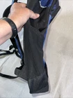 This High Sierra backpack in blue is perfect for your next backpacking or hiking adventure. With a zip closure, external and elastic pockets, and padded straps, this backpack is both convenient and comfortable to wear. It also features a water-resistant design to keep your belongings dry in case of any weather conditions. The backpack's capacity is unspecified, but it has plenty of room for all your essentials. The blue color adds a pop of style to your outfit, and the harness ensures that the backpack stays securely on your shoulder. Whether you're a seasoned hiker or just starting out, this High Sierra backpack is a great choice for your next outdoor trip. In good condition.