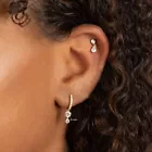 Crafted with precision, these silver huggie hoop earrings exude timeless elegance. The design features a delicate circle shape adorned with a complement of white/colorless diamonds, offering a sparkle that's both understated and captivating. With a metal purity that guarantees durability and shine, these earrings are a versatile addition to any jewelry collection. DESCRIPTION -------------------- • Earring Size: → Earring gauge: 20→ Inner Diameter: 8 mm → Outer diameter: 10 mm • Moissanite Details: → Shape: Round → Measurement: 4.OO mm + 2.50 + 1.30 mm → Number of Stone: 2 + 2 + 16 → Total Ctw: 0.95 → Color: Colorless → Clarity: VVS • Metal Details: → Metal Type: Silver → Metal Purity: 925 Warranty and Service: ------------------------------ • We offer a 1 Year warranty on all our Jewelry. • We also provide paid service after completion of the warranty. Thank you for visiting our store, see you soon. --------------------------------------------------------------