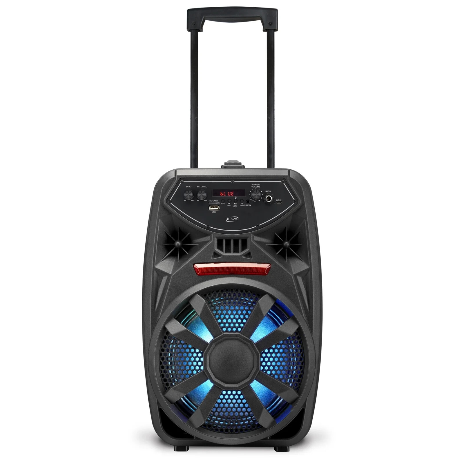 Full-bodied sound and low, lows are what you want from a party speaker. That’s exactly what you get with this iLive Wireless Tailgate Party Speaker. Connect your Bluetooth device and get the party going with room-rockin’ bass and a microphone input to make announcements to the crowd. If you want to take the party to the next level, turn on the LED light effects and create a concert -like atmosphere. The transportability is second to none, the ergonomic retractable handle and wheels make moving this speaker around easy. Dimensions:9.84 x 9.25 x 16.93 in. Supports Bluetooth v5.0 Supports profile A2DP (Advanced Audio Distribution Profile) Wireless range: 60 feet Built-in 8" speaker FM scan radio Line in (3.5mm audio input) Micro SD slot and USB port: supports audio file playback Microphone input Micro-USB port for battery recharge Retractable pull handle and roller wheels for easy transport Frequency response: 70Hz - 10kHz Sensitivity: 81dB Voice prompts announce speaker functions and make Bluetooth pairing easier Color changing LED light effects Play/pause/pairing button Skip forward/skip back/tuning buttons Volume/on/off control Function mode and speaker light on/off switch Microphone volume control Echo control LED display DC battery power: built-in rechargeable lithium ion battery Battery life: ~6 hours at 50% volume Battery life: ~2.5 hours at 100% volume Charge time: 4-5 hours Micro-USB to USB cable 90-Day Limited Warranty Features Built-in wheels Brand iLive Model ISB380B Color Black Manufacturer Part Number ISB380B Assembled Product Weight 5.4 lb Manufacturer DPI Inc. Battery Life 6 h Power Type Battery Wireless Technology Bluetooth Recommended Location Indoor, Outdoor Shape Rectangle Electronics Feature LED Lighting Assembled Product Dimensions (L x W x H) 9.84 x 9.25 x 16.93 Inches