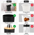 iMucci Bathroom Accessories Set with Trash Can,Toothbrush Bath Set, Black Product Details Brand: iMucci Material: Plastic Color: Black Finish Type: IZ0124 Special Feature: Durable, Dust Proof, Easy to clean Package Information: Holder, Cup Age Range (Description): Adult Number of Items: 9 Number of Compartments: 1 Model Name: IZ0124WDBA Manufacturer: iMucci Package Dimensions: 11.85 x 8.03 x 7.72 inches Item Weight: 2.97 pounds Country of Origin: China Item model number: IZ0124 Fabric Type: Plastic Finish types: IZ0124 Number of pieces: 9 Batteries required: No Included Components: 1*toothbrush holder, 1*toothbrush cup, 1*lotion soap dispenser, 1*soap dish, 1*toilet brush,1*trash can,1*Vanity Tray,2*Qtip Plastic STURDY AND DURABLE PLASTIC - iMucci 8 pieces bathroom accessory set is known for its incredible strength and long-lasting.Whether you're looking for a kit that extreme Enduring or stylish, its lightweight nature and versatility make it the perfect choice for a wide range of your bathroom decor. MULTIFUNCTIONAL BATHROOM ACCESSORY SET - 8 pieces bathroom accessories set complete, including 1*toothbrush holder, 1*toothbrush cup, 1*soap dispenser, 1*soap dish, 1*toilet brush holder, 1*trash can, 2*Qtip holder. Makes the bathroom both well organized and adds a simple textured style. SOAP DISPENSER & TOOTHBRUSH HOLDER - Bathroom Lotion Dispensers really works great. No chance of breaking it because the top is a sturdy surface.Pump can be pressed by one hand and rebound automatically to press .Toothbrush holder fit most sizes of toothbrushes, toothpaste tubes, flossers, razors and more.Made of amazing bamboo wood and ABS material, durable and rust-proof. QTIP HOLDER & SOAP DISH - Bathroom Soap Dishes are an attractive way to organize items like Qtips, cotton balls,flossers, bath salts, hair bands or any other bathroom necessities and accessories. Drain design construction makes the soap durable for years of use. Classic soap tray matches a variety of bathroom decors TOILET BRUSH & TRASH CAN -The brush head can be extended to a deeper place to more effectively 360°clean the corners and crevices of the toilet. MULTIPURPOSE: Bathroom kit perfect for bathroom decors, , dorm, hotel, apartment, laundry room, basement, RV, etc.Perfect for wedding,housewarming/new home gift,birthday gift, mother’s day gift , valentine’s day gift,thanksgiving gift,Christmas gift,bridal or baby shower gifts,friend, sister, co-worker or just about anyone to use all year round.
