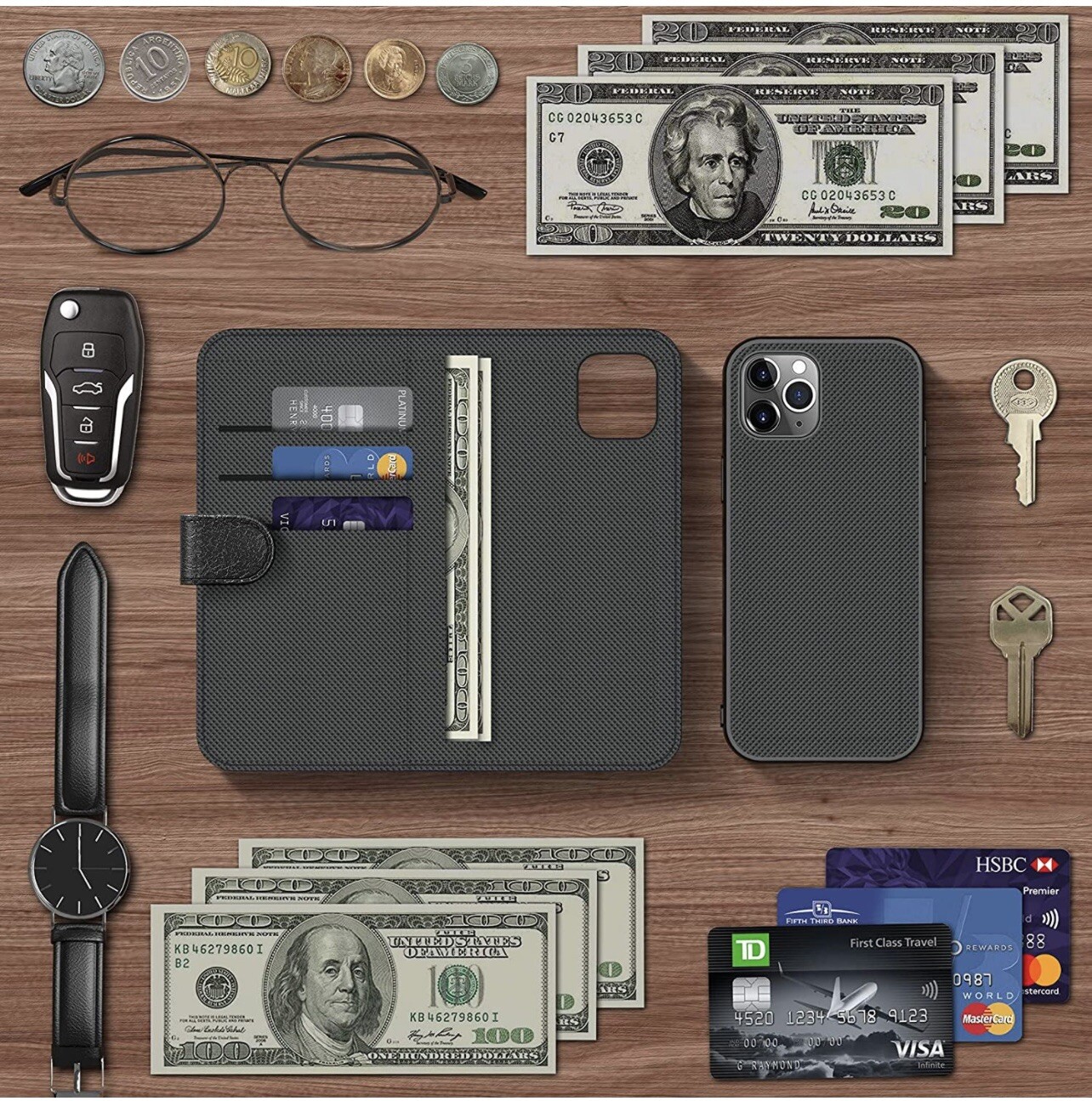 iPhone 11 Pro Max Leather Wallet Case with Card Holder and Shockproof Protection