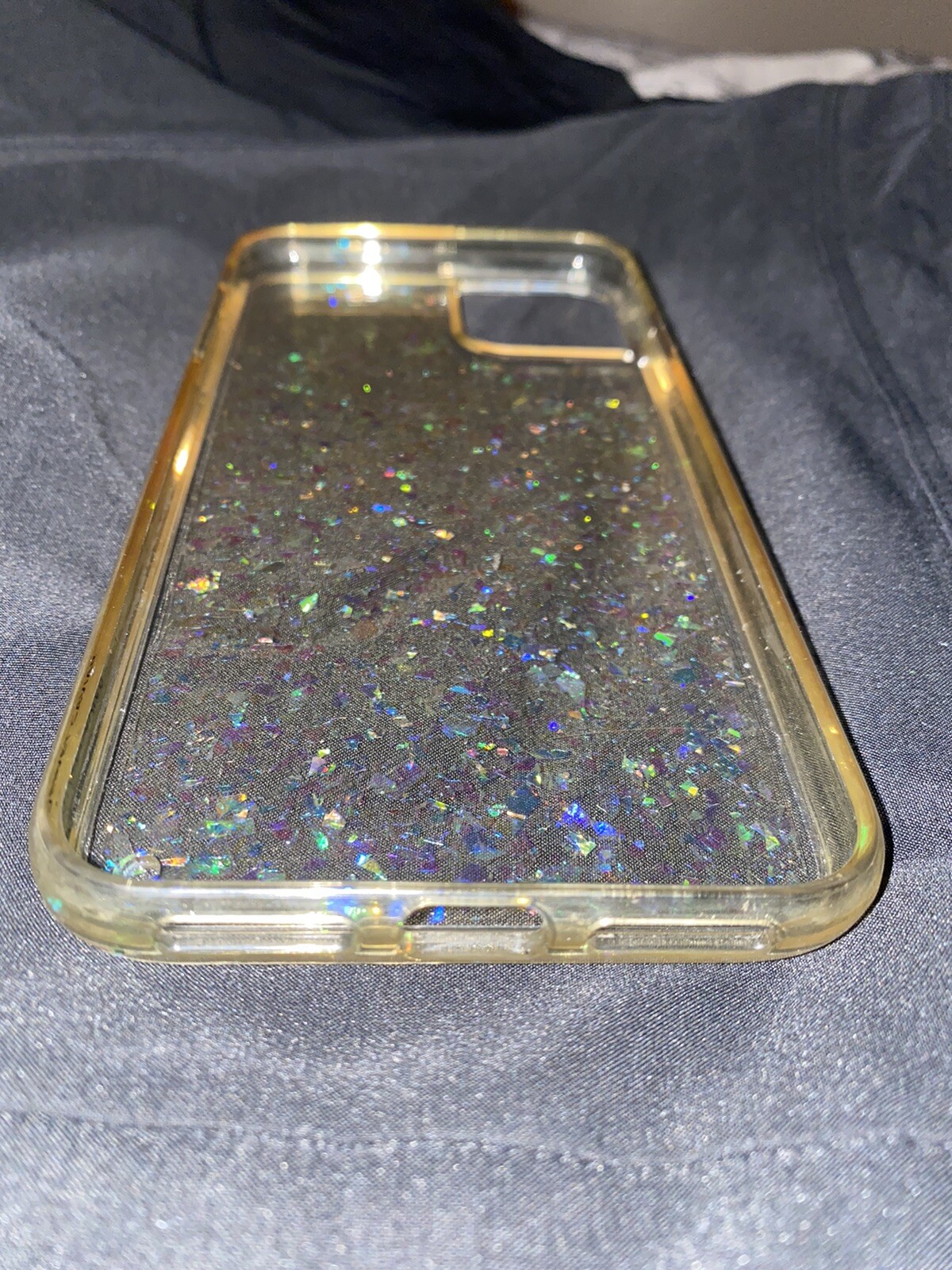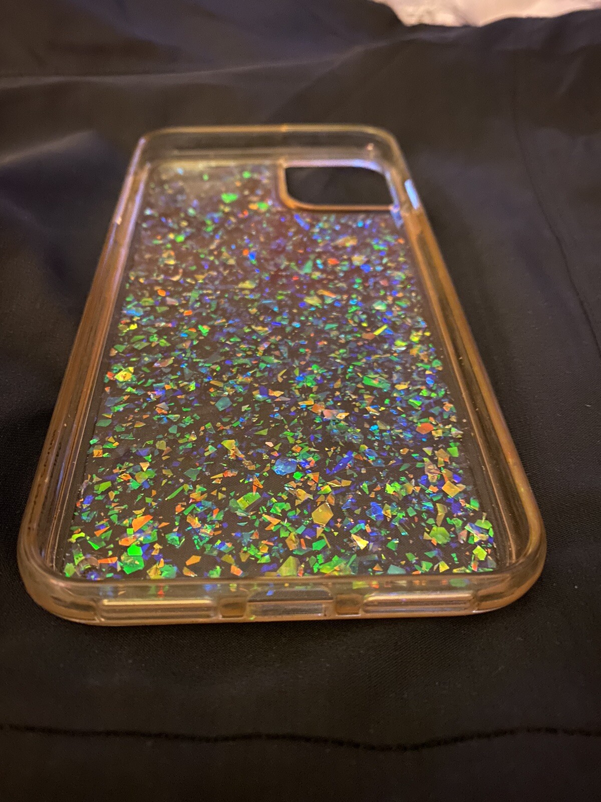 iphone 11 pro max case. Has glitter reflects that shine against light pretty good condition, has a thicker back because of the holographic flakes they have on it. really pretty. Velvet Caviar