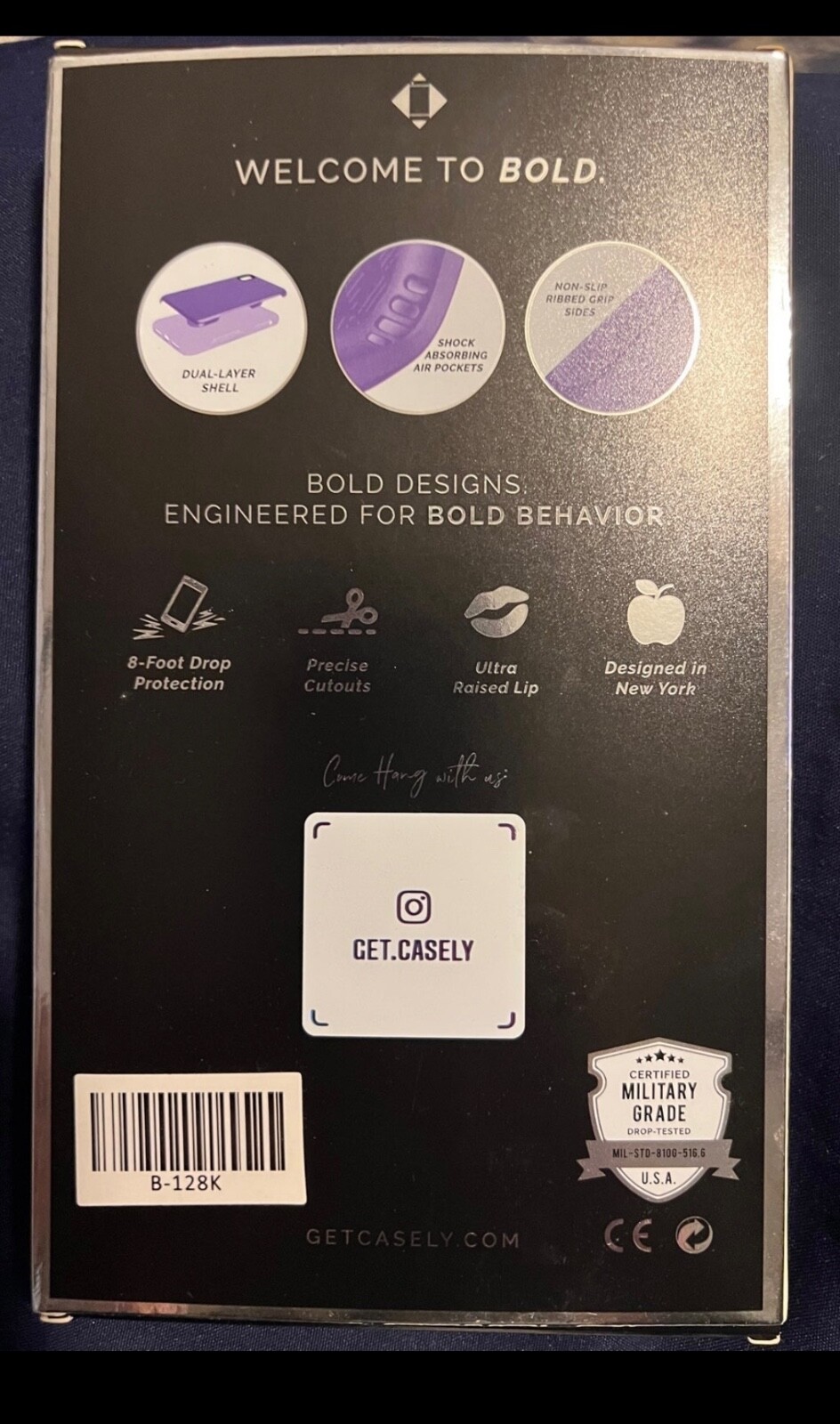 Casely Bold Iphone 11 pro max phone case - Shockproof up to 8ft - non slip grip edges - Military grade drop tested protection - Purple swirl hard case back - raised lip for better protection