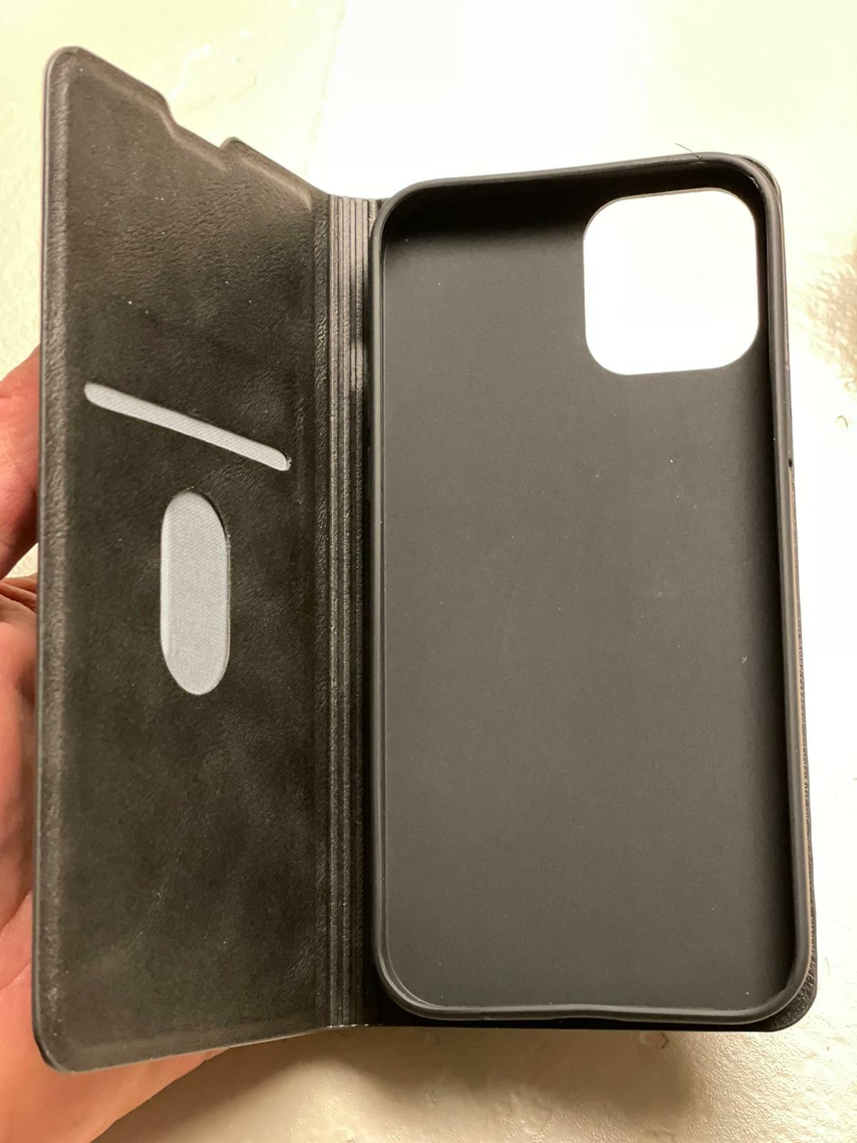 I phone 12 and Iphone 12 Pro Leather Black Magnetic Flip Case Very sturdy Constructed Faux Leather Case Beautiful grain faux leather Raised back lip for Camera protection and scratches Silicone case fits perfectly providing easy access and durability Magnetic clip for screen protection and magnetically clips back when answering calls Single card slot for identification Case flips and converts as a stand Easy to install and remove phone
