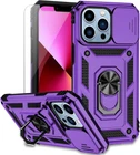📱 【Durable and Delicate Phone Case】Armor Case with sliding camera cover specially designed for iPhone 13 6.2 inch (2021 released). The precise cut out fits each button,camera,speakers and ports precisely, easy to press and access. ⚠️ Notice: Due to the metal ring on the back,the case will NOT work with wireless Charging function. 👍 【Military Grade Protection】Double layer shockproof case made by TPU+PC.This multi-layer cushion structure provide additional shock absorption protection.Certified by the Military Standard,survived over 8,000+ drop tests from up to 8FT!The flexible TPU interior absorbs impacts from inside.In addition,exterior with four reinforced corners can effectively absorb the impact of falling! 👍 【Camera & Screen Protection】Sliding camera cover protect the iPhone 13 case camera lens from getting scratched and scuffed.Subtly enhanced 1.8 mm screen lips and HD screen protector provide the screen extra and comprehensive protection.Ensuring every aspect of your phone is protected with uniquely! 👍 【Magnetic Ring Kickstand】Newly upgraded multi-function case built-in ring kickstand and metal patch.360°rotating ring provide two stand modes for vertical horizontal viewing,so it can be used as ring holder and release your hand when watching video.The Metal Patch back easily attach to magnetic car mount,very convenient during driving time for navigation.You will love how convenient it is with such powerful functions. 🎁 【Warranty Service】Package come with 1 pack case and 1 pieces PET HD Screen Protector (Plastic). M MAIKEZI provides you warranty service. If you have any problems with our products, please contact us via Amazon Seller Center at soon.💗 We will reply timely. Product Description for Apple iPhone 13 Military-Grade 2nd gen with Slide Camera Lens Cover Magnetic Ring Holder Kickstand Protective Phone Case P LEASE NOTE!!! T here are four versions of i Phone 13 Series phone, this case is only fit for i Phone 13 ( 6.1 inch) , Released by AT&T, Boost, Consumer Cellular, Cricket, Metro, T-Mobile, U.S. Cellular, Verizon, Xfinity Mobile. Frequently Asked Questions: Question 1: Will it be bulky in hands since it is a dual layer case? Answer: No, it won't be bulky at all due to the compact design. And it adds minimum weight to your phone. Question 2: Does it support wireless charging? Answer: No, it does not allow for wiress charging. You have to remove the case before placing onto your wireless charger. Question 3: Does the case come with screen protector? Answer: Yes, every case package come with 1 pieces PET HD Screen Protector (Plastic). Question 4: Can the ring stand work both horizontally and vertically? Answer: Yes, it can. Horizontally, the mounting angle is about 70° and it is perfect for nearly all people. Vertically, it can only mount at about 35° above the level, which is fine for most people but others may find it a little bit low. It is a matter of options. Product Features: High-quality Materials: Made of premium shock-absorbing materials, consists of soft TPU and hard PC. Two-In-One case cover design provide superior protection. And avoiding anti-collision, shockproof, scratch-resistance, non-slip, impact protection, the maximum protection of your mobile phone life Raised Edges: Raised lip protects your screen and camera from surface scratches Precise hole position: Accurate tailoring makes it easy to access all sockets and features With ring style kickstand: 360 degree rotating ring moves in a full circle, kickstand lets you watch movies and videos hands-free Magnetic Car Mount: With built-in metal magnetic sheet for stable adsorption, which can be directly adsorbed to the magnetic car mount holder. (Not includes the magnetic car mount holder) Built-in Camera Lens Cover: The sliding lens cover and 0.2 mm raised bezel protect your phone camera from scratches,collision,wear and impact. It can slide smoothly left and right,perfect to hide the camera.Besides,the sliding cover is slightly locked on both sides and can not be slid at will,which will not affect the normal use of the phone lens. Cutting-Edge Design: The inch-perfect mold keeps your phone slim and aggressive, while the dual-layered TPU and polycarbonate materials provide exceptional protection from drops and scratches. It is perfect for those who seek a slim fit case with optimal protection. Available in a Variety of Colors: Having a range of vibrant color choices allows you to pick the case that best suits your personality. Raised Bezels for Enhanced Protection: Highly raised lips provide extreme heavy duty protection to screen and camera. With hybrid structure of rigid PC and soft edges equipped with Air Spring Technology, this Compatible with iPhone 13 6.1 inch case provides extreme protection without adding excessive bulk. Compatible List: Apple iPhone 13 ( 6.1 inch) Packaging including: One for iPhone 13 Military Grade 2nd gen Kickstand Case with HD Screen Protector