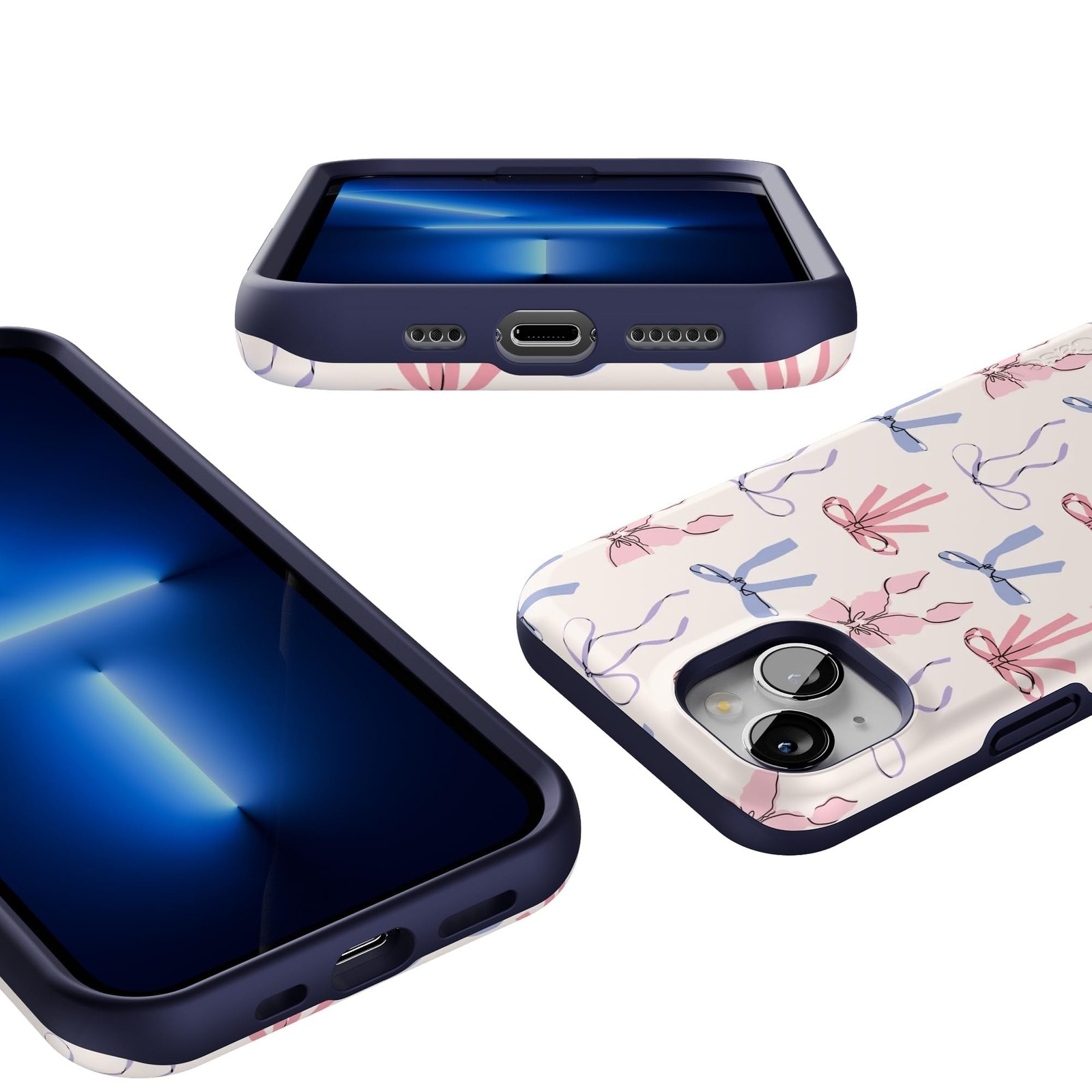 Product Page iPhone 13 Coquette Girlie Pastel Bows Case Military Grade Protection Stylish ... Description: Say hello to our best-selling Coquette Girlie Pastel Bows Case, the perfect accessory to add some soft, flirty vibes to your everyday style. With its playful pastel pink and blue bows, this case has that effortlessly feminine touch that's totally in right now. Whether you're taking cute selfies or just want to give your phone a stylish upgrade, this case brings all the charm and protection you need. Time to show off your sweet side with this adorable bow-covered staple! Features: Compatibility: Meet the Bold Collection - Not just a pretty cover for your phone, the Bold Collection Case from Casely is a super-strong Military-Grade-tested protective case, offering up to 8-feet of drop protection. Unique Features: Slip Resistant Side Grips. Stop drops in their tracks. Textured side grips help your phone firmly in your hand. Lightweight for Those on the Go: Don't carry a dumbbell around in your pocket. Ultra sleek, ultra slim. 3mm raised front lip protection. Weight: 1 Ounce. Protection: Shock absorbing air pocket technology cushions your phone from drops of up to 8 feet. Camera Protection: 1.5 mm raised lip keeps your camera safe from contact. Snap Crystal-clear pics every time. Charge Wirelessly: Go wireless. All Bold cases are wireless charging compatible. Designed in USA: Casely is one of very few case companies that designs our cases in the USA; All of our Phone Cases are designed in our Brooklyn, New York Headquarters Our Philosophy: We build protection for your Boldest behavior. #LiveBold. Casely's products are made with love and hand inspected from corner to corner to ensure high-quality phone cases you can count on. All cases come with a 1-year product warranty.