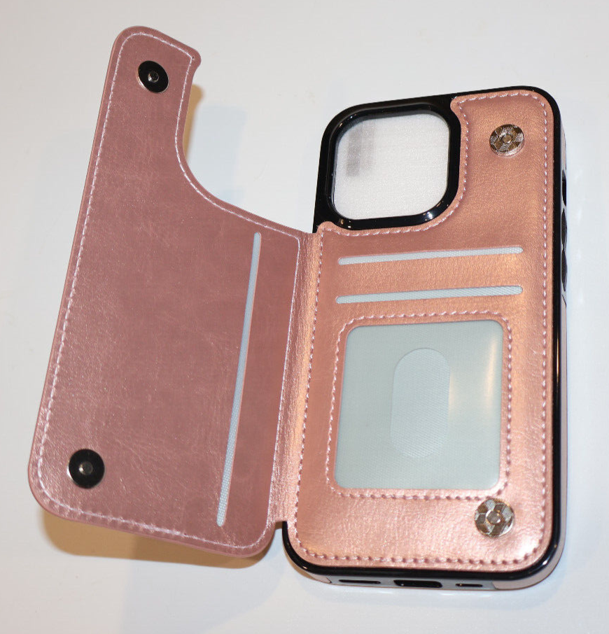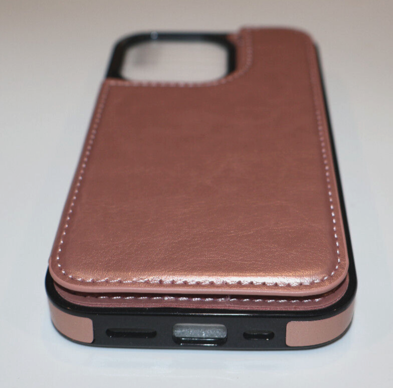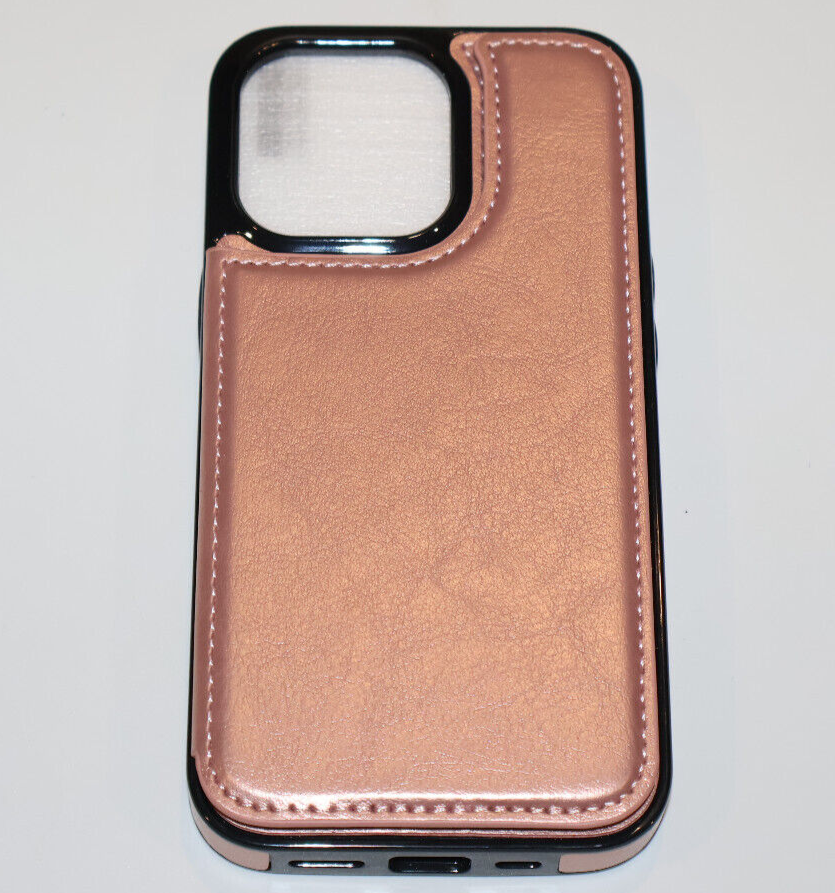 Iphone 14 Pro Case Metalic Rose With Card Holder Wallet Includes screen protector & cleaning wipes stk# WPD2