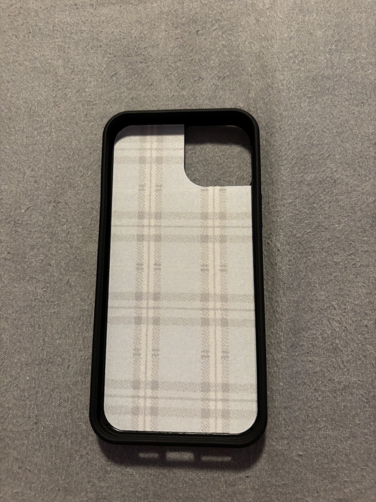 iPhone 15 Plus Case in White & Blue Plaid Wildflower Design