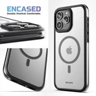 MAG-AIR Case and Belt Clip � Designed for iPhone 15 Pro Max (Compatible with MagSafe) The case that redefines practicality and delivers dependable protection. Designed with a slim clear body and sleek black trim, this case boasts a timeless yet modern look. AirGuard Technology The hybrid construction features strategically placed air pockets along the edges and corners to guarantee superior drop protection without compromising the case�s slim profile. Showcase your phone while delivering a reliable defense against everyday knocks and drops, thanks to the shock-absorbing bumper that cushions against impacts. Compatible with MagSafe Enjoy the convenience and simplicity of the magnetic ecosystem. Seamlessly connect to magnetic chargers, wallets, grips, mounts, power banks and more. Secure-Fit Belt Clip Holster The set includes a secure-fit companion belt clip holster with a secure-fit top locking design that makes inserting and removing your phone a breeze. The rotating belt clip provides the flexibility to wear your phone vertically or horizontally based on your preference. Key Features: Anti-slip clear surface Sleek design Impact-resistant air pocket bumper Responsive buttons Precise port cutouts Compatible with MagSafe accessories Belt clip holster with secure-fit top locking design